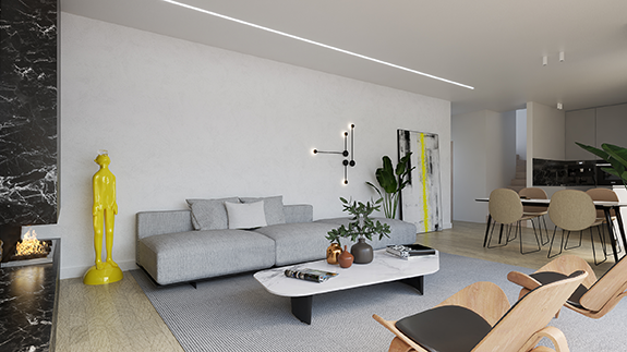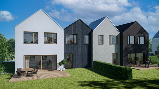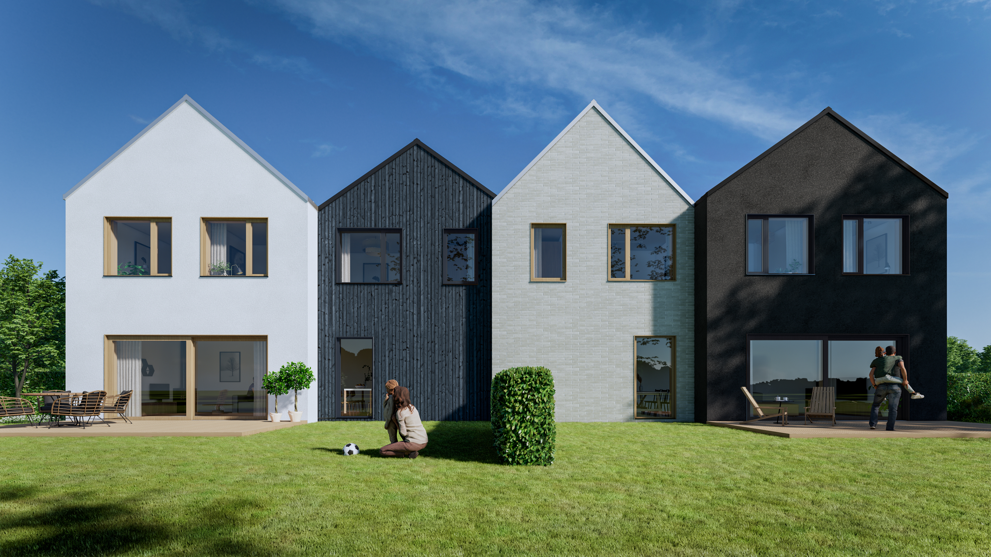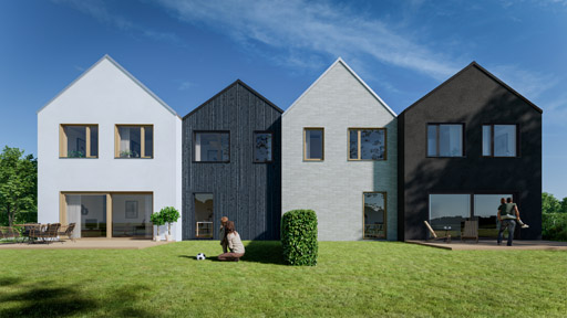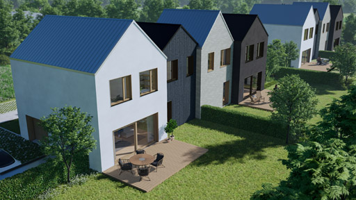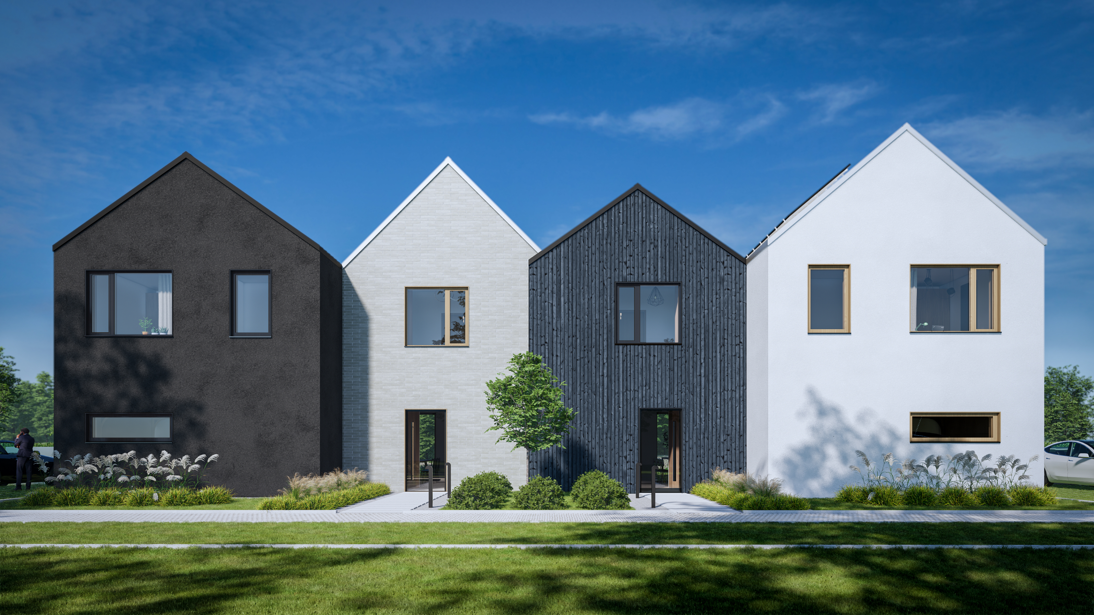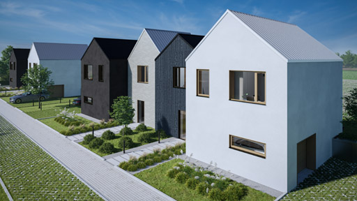 Zabieg taki zapewnia, tak ważny w tej części domu, komfort akustyczny. Nadaje on również budynkowi indywidualny wygląd sprawiający wrażenie, iż dom jest podwójny. Całość dopełniają charakterystyczne nowoczesne elewacje które nadają budynkom ponadczasowy wygląd i design.