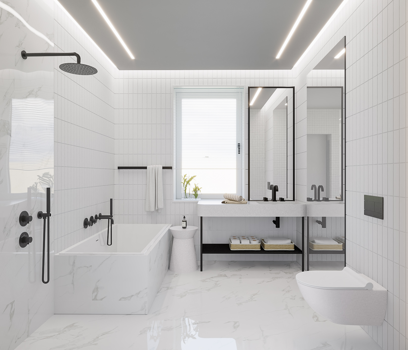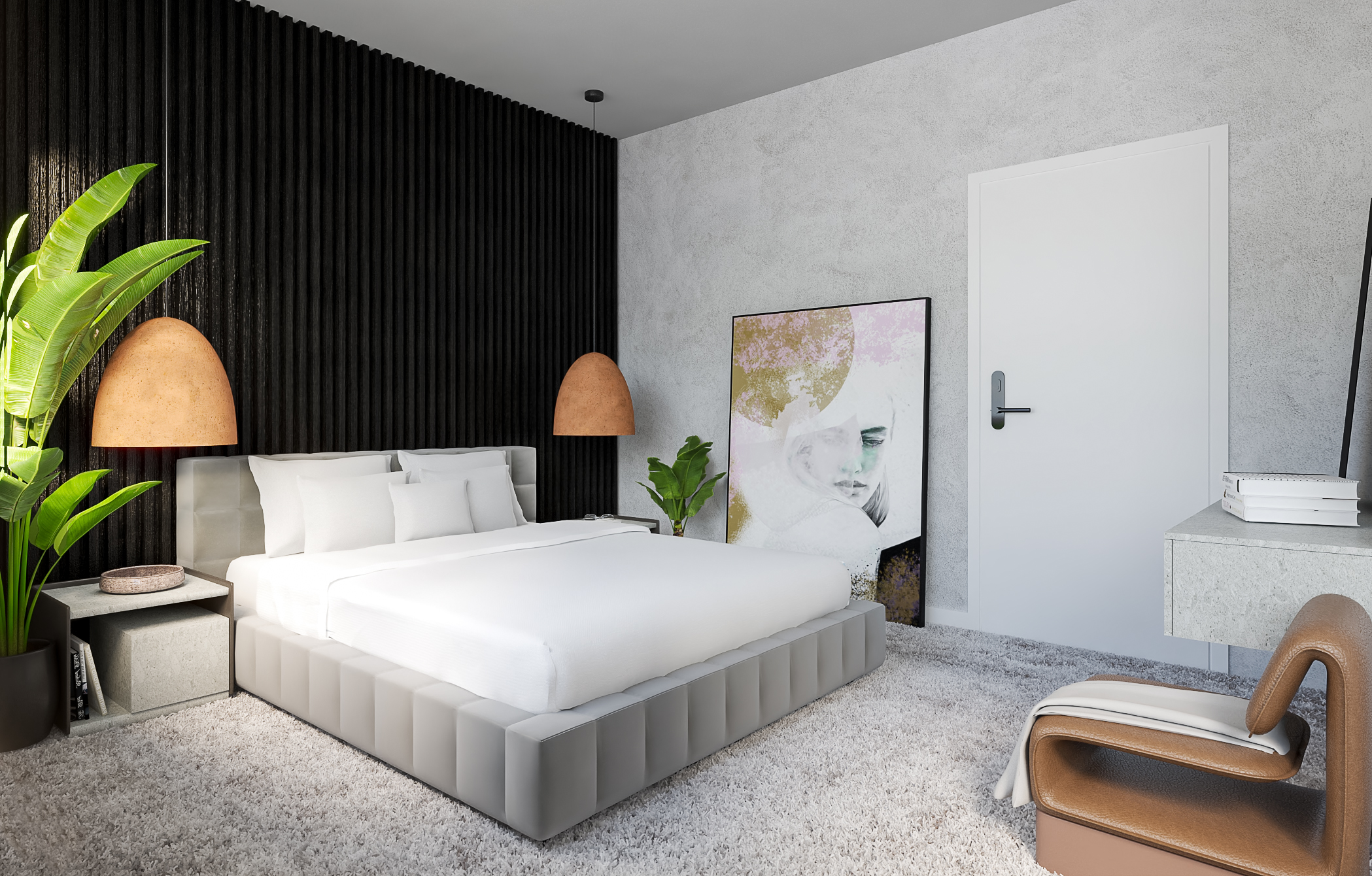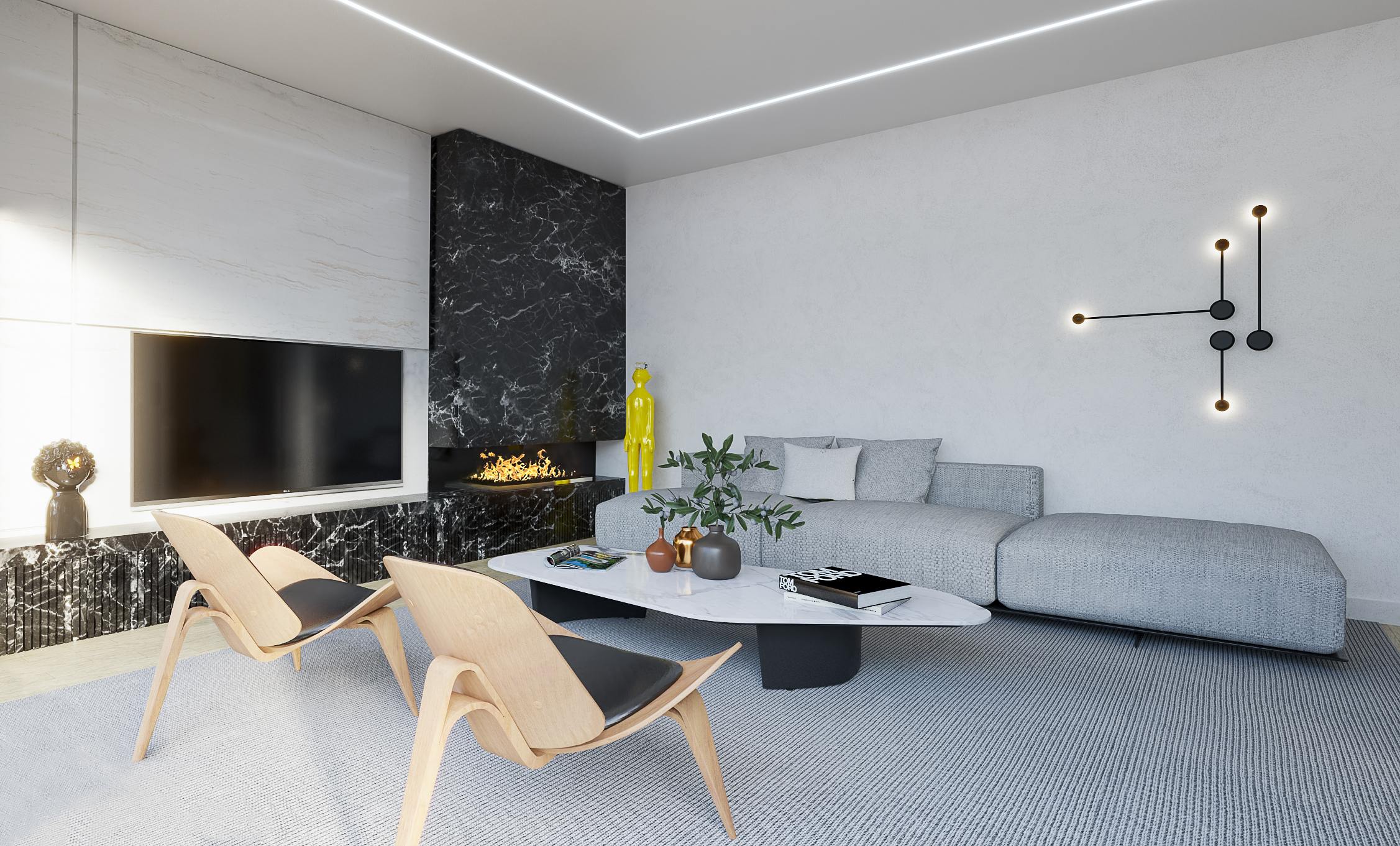 Zabieg taki zapewnia, tak ważny w tej części domu, komfort akustyczny. Nadaje on również budynkowi indywidualny wygląd sprawiający wrażenie, iż dom jest podwójny. Całość dopełniają charakterystyczne nowoczesne elewacje które nadają budynkom ponadczasowy wygląd i design.